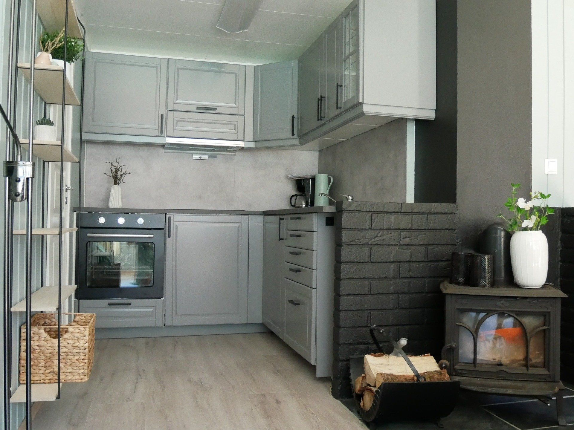 - Kjøkken med steikeplater og steikeovn, kjøleskap med ein liten frysar